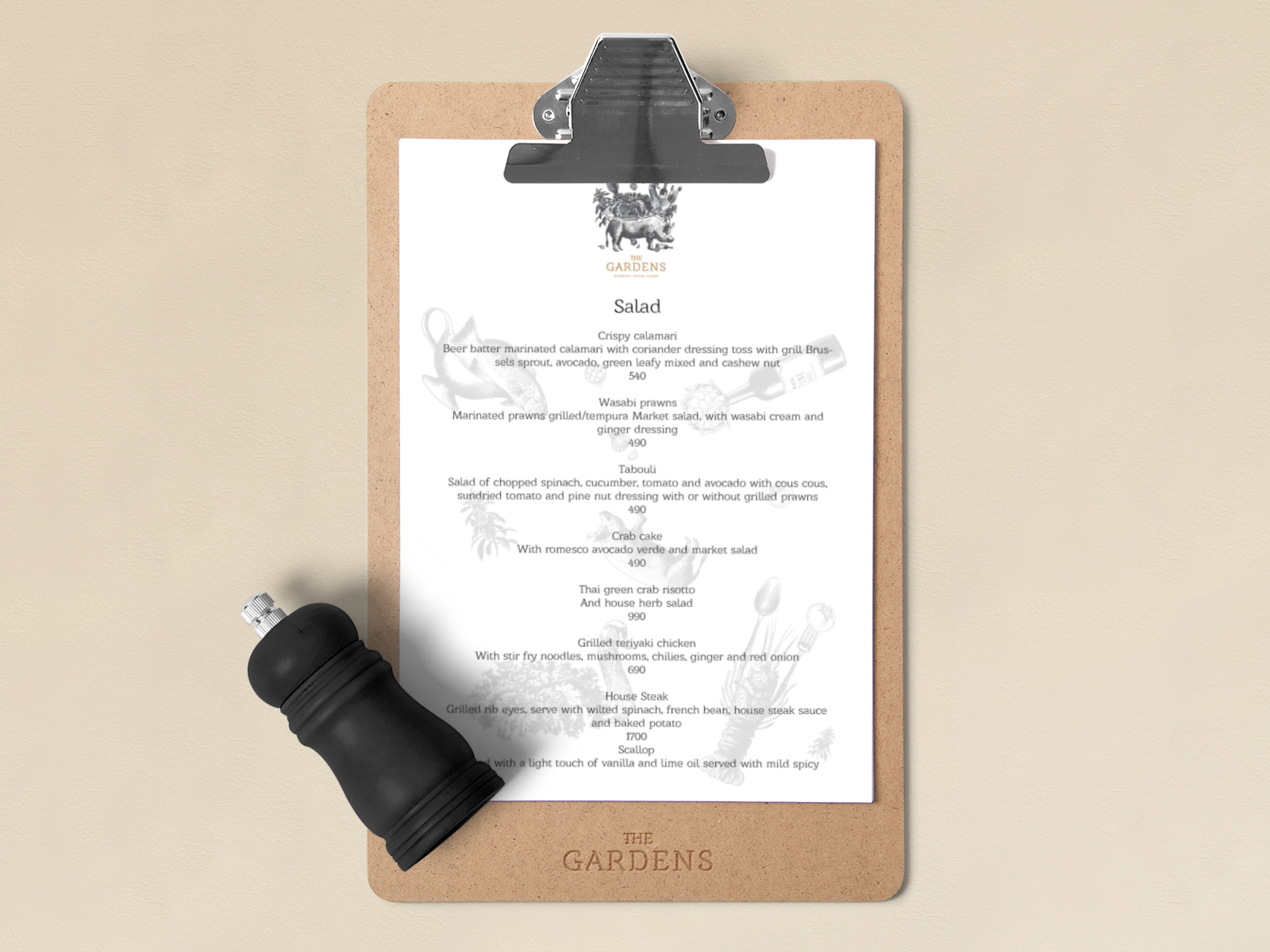 The design’s identity comes from our concept design of using garnishes, self-grown vegetables, and materials used in the restaurant.