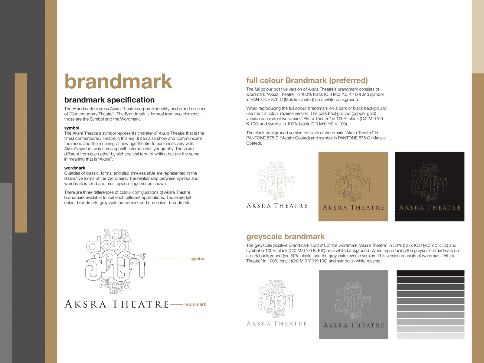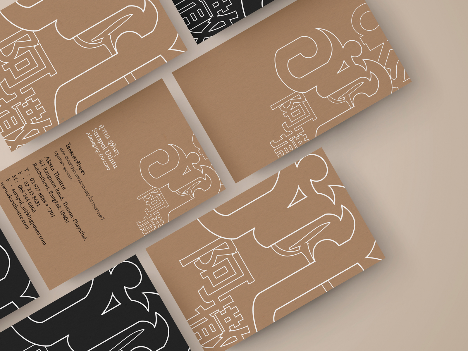 I won the design pitch for Aksra Theatre King Power and played a key role in developing its newest branding, encompassing everything from the logo to the theatre's interior signage. The concept centered around using traditional Thai lettering to create a distinctive and memorable identity, setting it apart from the many modern venues in Bangkok. To capture the elegance and cultural richness of the space, I employed a palette of gold and black, evoking an Asian aesthetic that harmonized beautifully with the theatre’s Baroque-inspired design and Thai artistry.